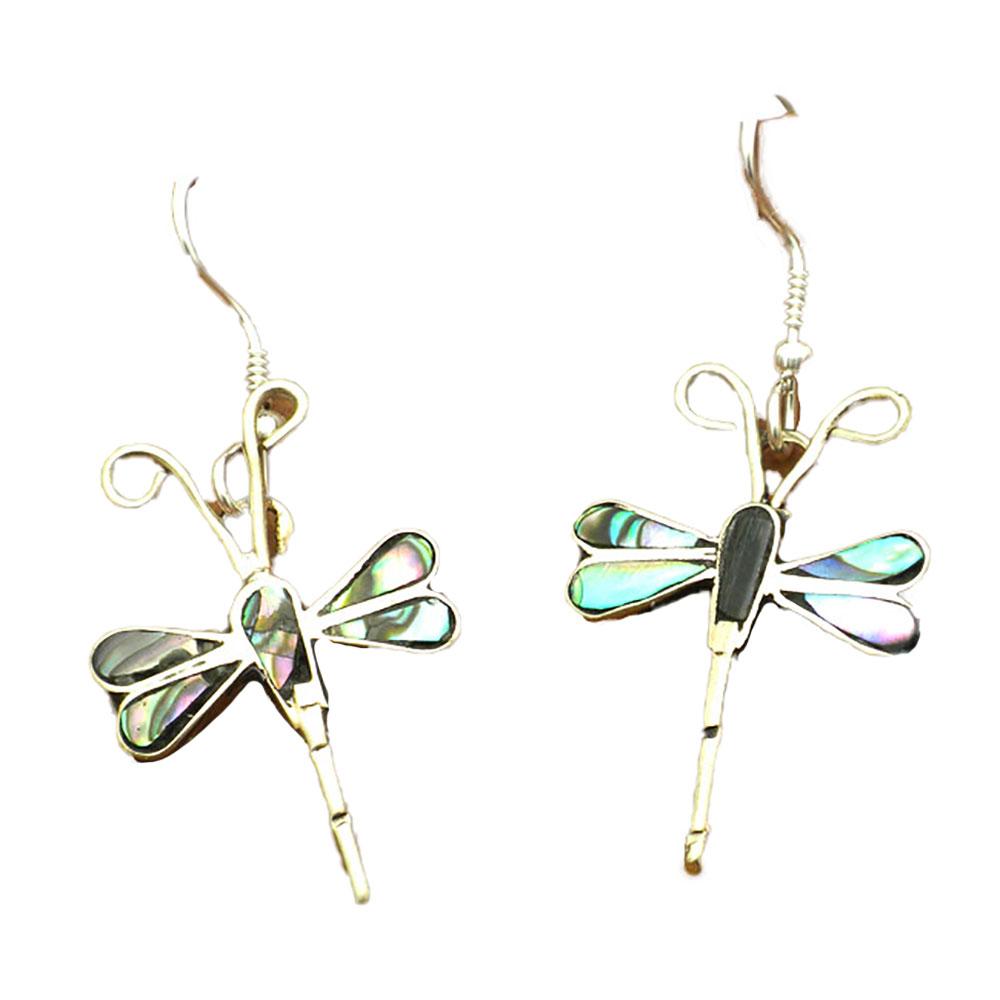 Abalone and Alpaca Silver Dragonfly Earrings Artisana