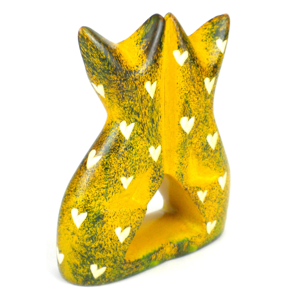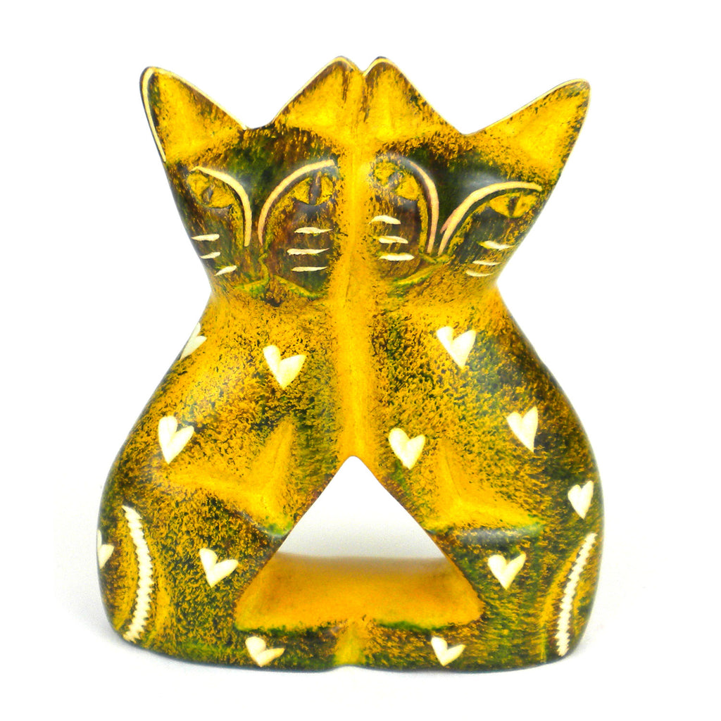 Handcrafted 4-inch Soapstone Love Cats Sculpture in Yellow Smolart