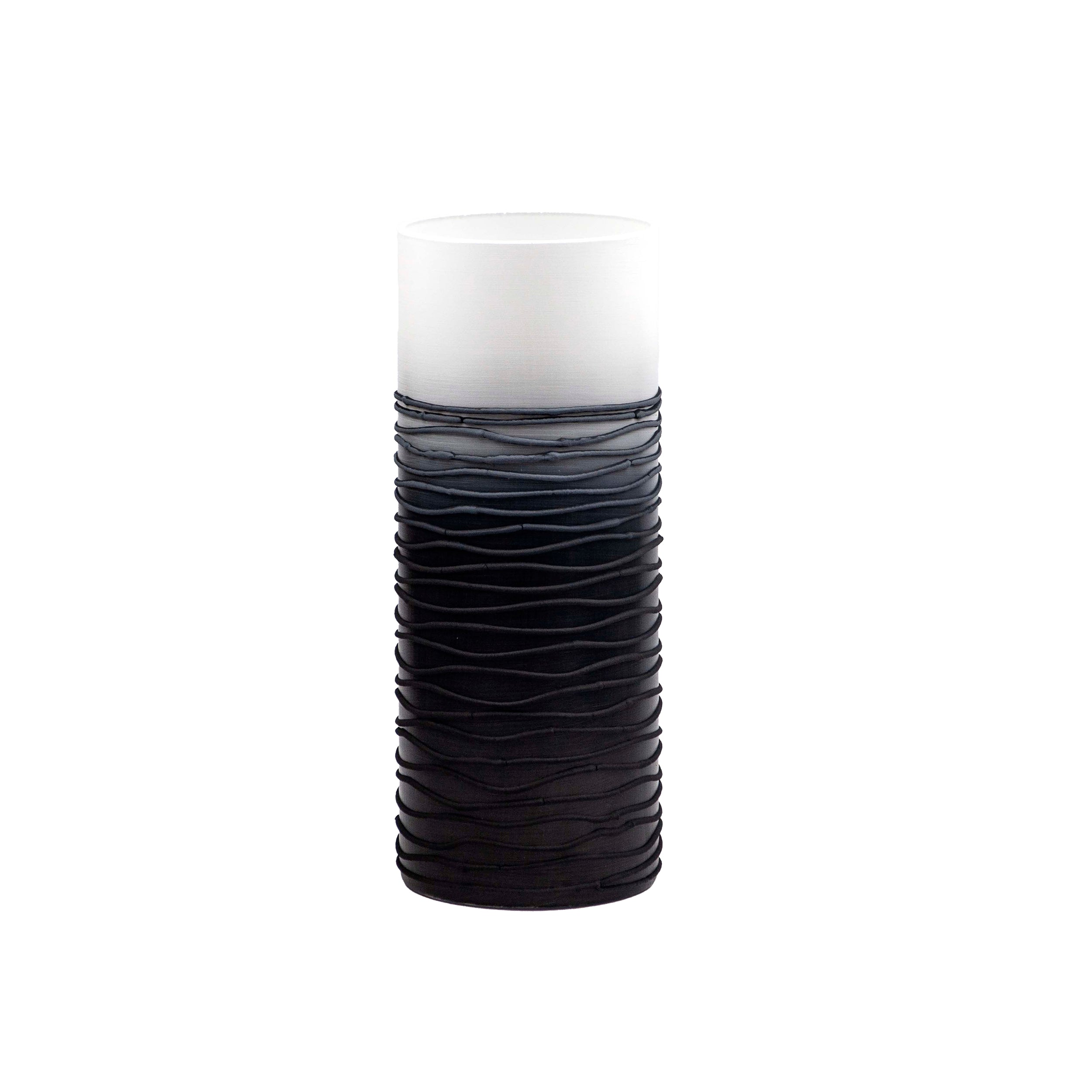 Handpainted Glass Vase - Decorative Home Decor - Multitone Black Horizontal Wave Design - Home Decor - 12 inch Cylinder Tabletop Vase for Floral Arrangements