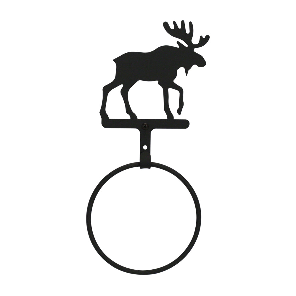 The creative designed towel ring makes a great first time impression to any wall. Introduce your guests to your creativity when you adorn on the bathroom or kitchen wall. Proudly made in the USA of high-quality, durable wrought iron, the towel rings' matte black, satin-smooth finish is powder-coated for durability. 5 1/2 In. W x 12 In. H Silhouette is 5 In. W x 4 3/4 In. H