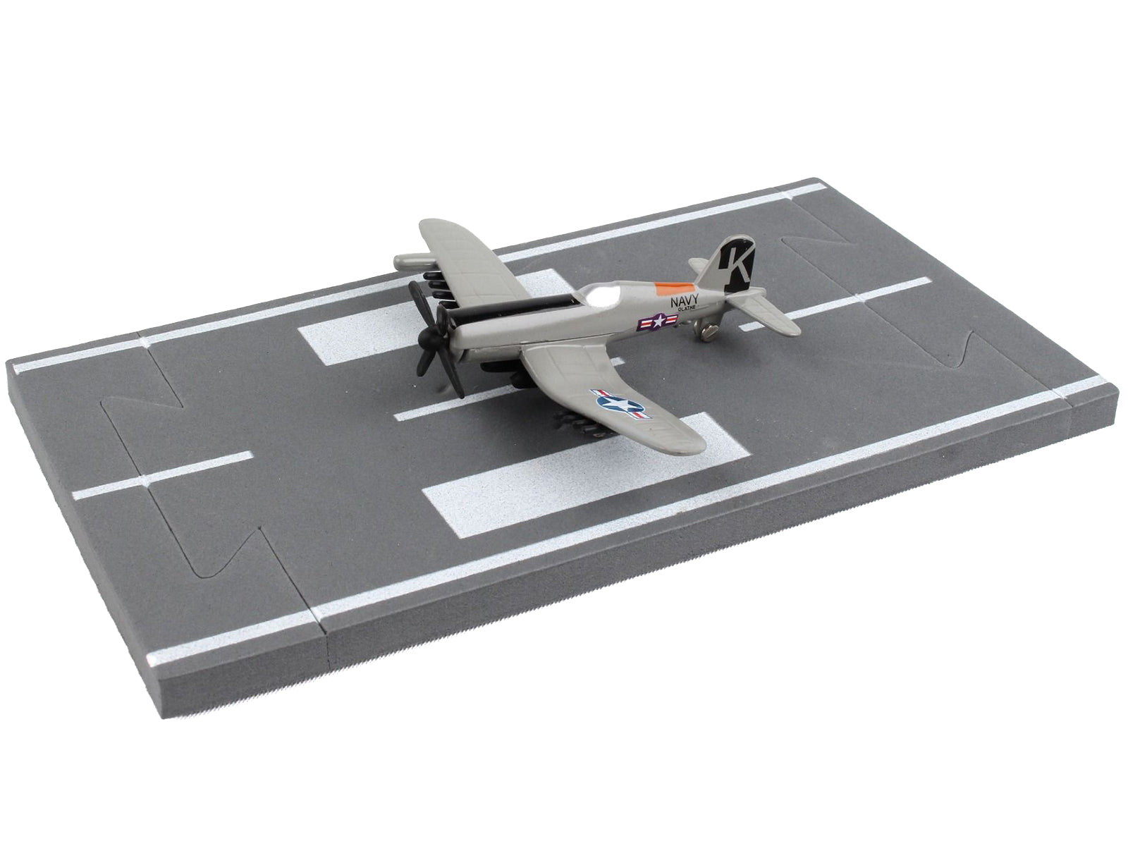 Brand new diecast airplane model of Vought F4U Corsair Fighter Aircraft Gray "United States Navy" with Runway Section die cast model by Runway24. Brand new box. Detailed exterior. Comes in a blister pack. This model does not have any openings. Manufacturer's original unopened packaging. Made of diecast metal with some plastic parts. Includes 7.25 inch long runway strip for display. Dimensions approximately L-2.75, Wingspan-3.625 inches. Comes with a flexible rubber runway section that can be used together with other Runway24 sets to create your own airport. HISTORY ASPECTS:The F4U Corsair, adorned with the markings of the United States Navy (USN), stands as an iconic symbol of American aviation history. Developed by Chance Vought during World War II, the Corsair emerged as one of the most formidable fighter aircraft, renowned for its distinctive gull-wing design, powerful engine, and exceptional combat performance.Powered by the Pratt & Whitney R-2800 Double Wasp engine, the F4U Corsair showcased remarkable speed and climbing capabilities. Its innovative wing design not only accommodated a massive propeller but also provided superior lift and stability during low-speed maneuvers. Armed with a potent combination of machine guns and rockets, the Corsair was a versatile aircraft capable of engaging both aerial and ground targets.The F4U Corsair played a pivotal role in various conflicts, particularly in the Pacific Theater during World War II. Its combat prowess earned it the nickname "Whistling Death" among Japanese forces. The Corsair continued its service in the Korean War, where it served with distinction in roles such as air superiority, close air support, and interdiction missions, contributing significantly to the success of naval aviation.Now, aviation enthusiasts and collectors have the opportunity to own a meticulously crafted diecast model. This collectible pays tribute to the Corsair's storied history and its impact on naval aviation. With its precise detailing and faithful replication of the USN markings, this replica is a must-have for those who appreciate the legacy of the F4U Corsair and its vital role in the annals of United States Navy aviation.
